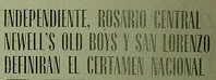 + NEWELL´S OLD BOYS:Fenoy; Jara y Rebottaro; Capurro, Montes y A. Fuentes (Volpi); Santamaría, Berta (Silva), Cáceres, H. Martínez y Mendoza.